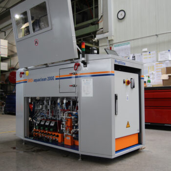 Als kleinste Ausführung unserer Flotationsanlagen rundet die OKO-aquaclean 200 E die Baureihe nach unten ab. Mit einem Durchsatz von 150 bis 600 l/h je nach Abwasserzusammensetzung und einer Stellfläche von gerade einmal 2,10 m x 1,00 m steht sie dem Anwender als kompakte Komplettlösung für seine Abwasseraufgabenstellung zur Verfügung. Mittels einer App wird die vollautomatische Abwasserbehandlungsanlage über ein Tablet bedient. Umfangreiche Sensorik sorgt für einen sicheren Betrieb. Durch die modular erweiterbare Dosiertechnik ist die OKO-aquaclean 200 E Flotationsanlage für die verschiedensten Aufgaben wie Emulsionsspaltung, Ölabscheidung, Fettabscheidung, Lackkoagulation, Neutralisation, Schwermetallfällung und andere Behandlungsprozesse rund um die industrielle Abwasserbehandlung geeignet.